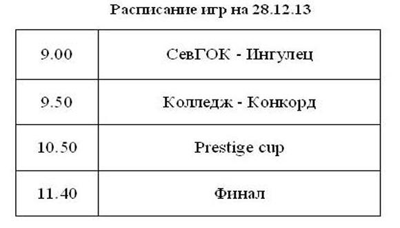 Расписание игр Кубка "Ялта-Ворохта" 28.12.13.
