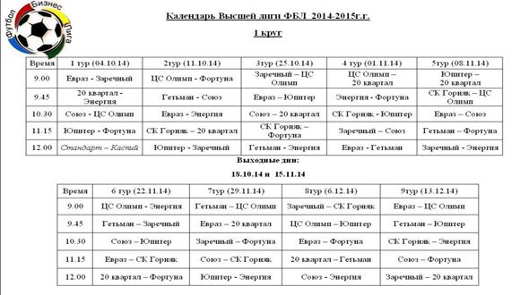 Календари чемпионата ФБЛ 2014-2015г.г.для Высшего и первого дивизионов