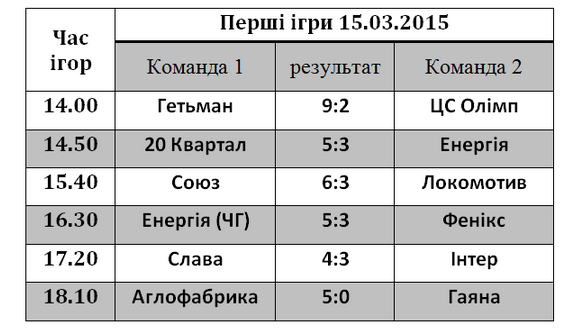 Кубок Кривого Рогу з футзалу 2015 (попередній груповий етап) Результати першого ігрового дня