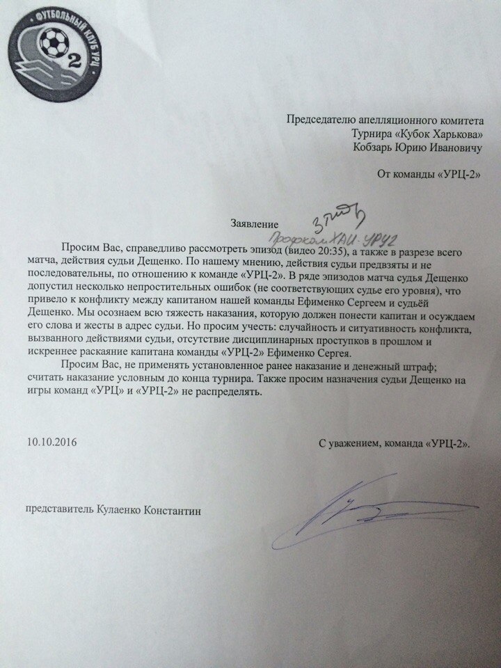 2. Видеозапись игры показала действия судьи Дещенко непредвзятыми к команде УРЦ2 ( спорные моменты на действия арбитра командой УРЦ не указаны)