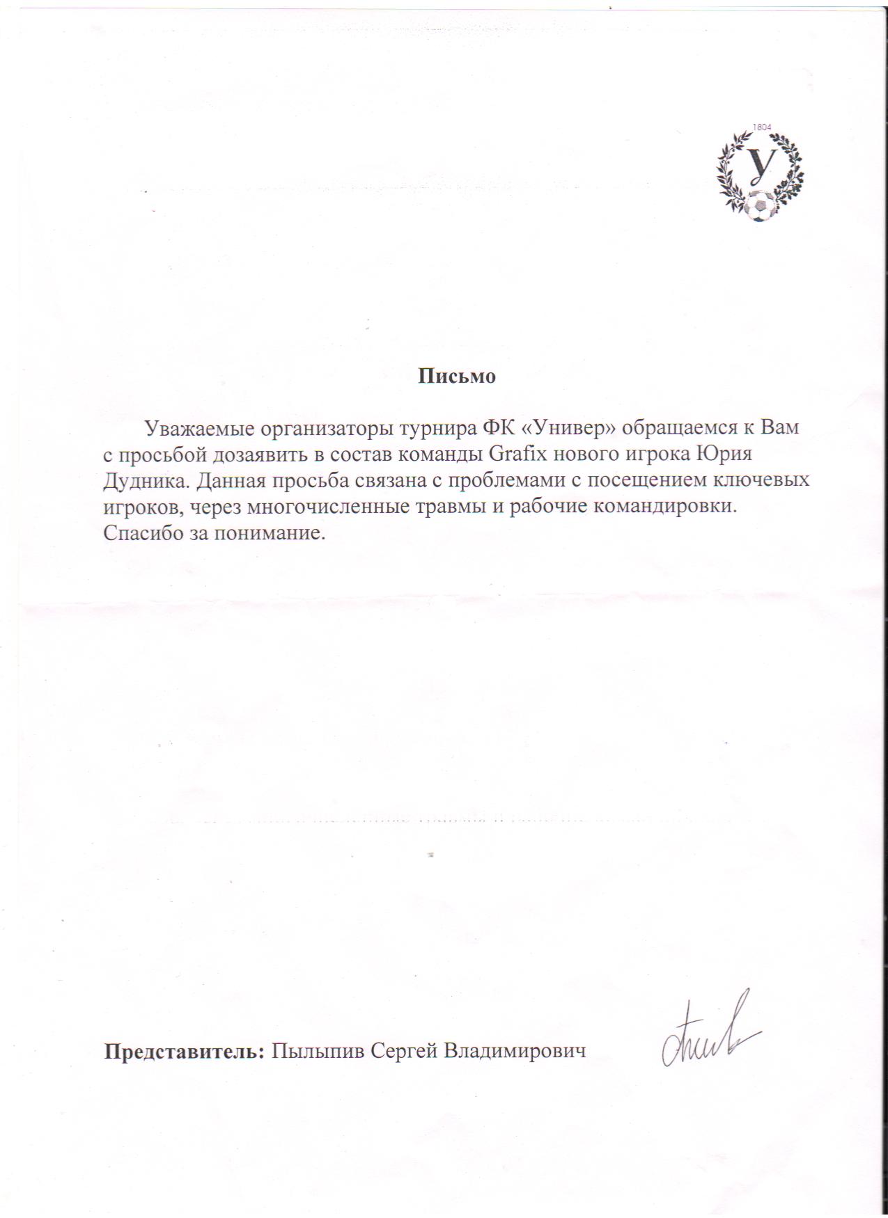 Оргкомитет рассмотрел заявление команды и принял решение разрешить дозаявку