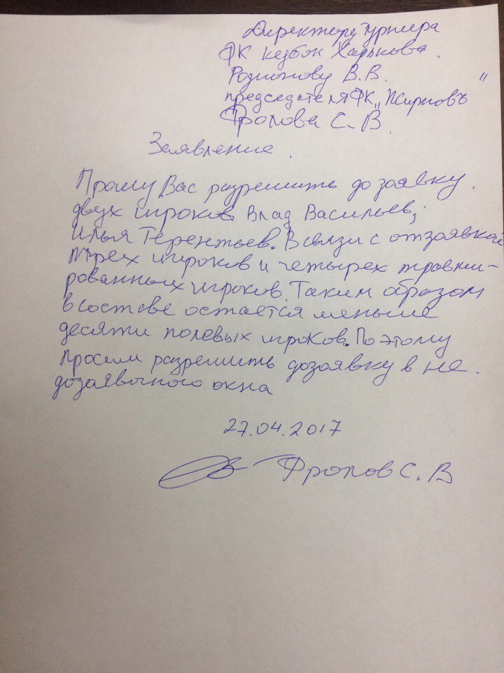 Учитывая отзаявку и травмы игроков команды, оргкомитет разрешил дозаявку