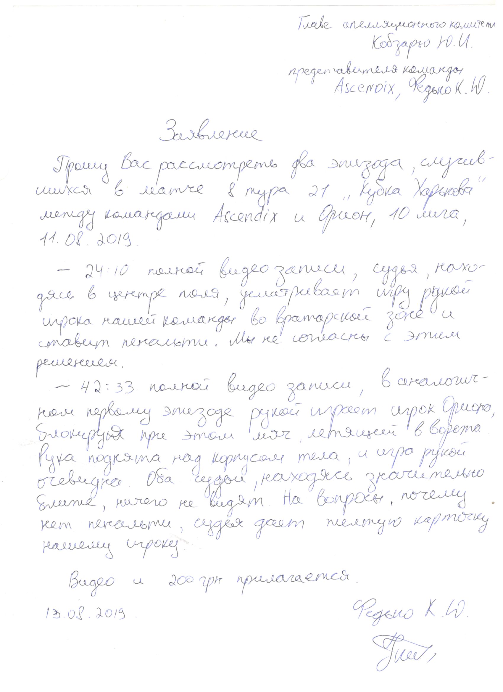 Апелляционный комитет рассмотрел апелляцию команды Ascendix на матч 8 тура, 10 лиги 21 Кубка Харькова между командами Ascendix – Орион в эпизодах 24:10 и 42:33 согласно видео на сайте.