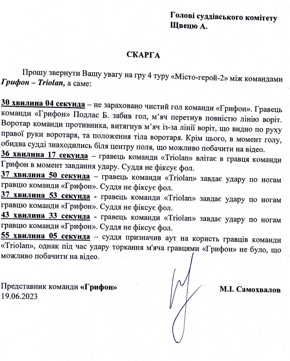 Скарга на суддівство команди Грифон