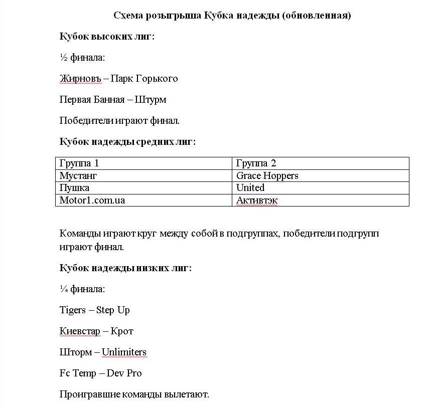 Схема розыгрыша Кубка Надежды
