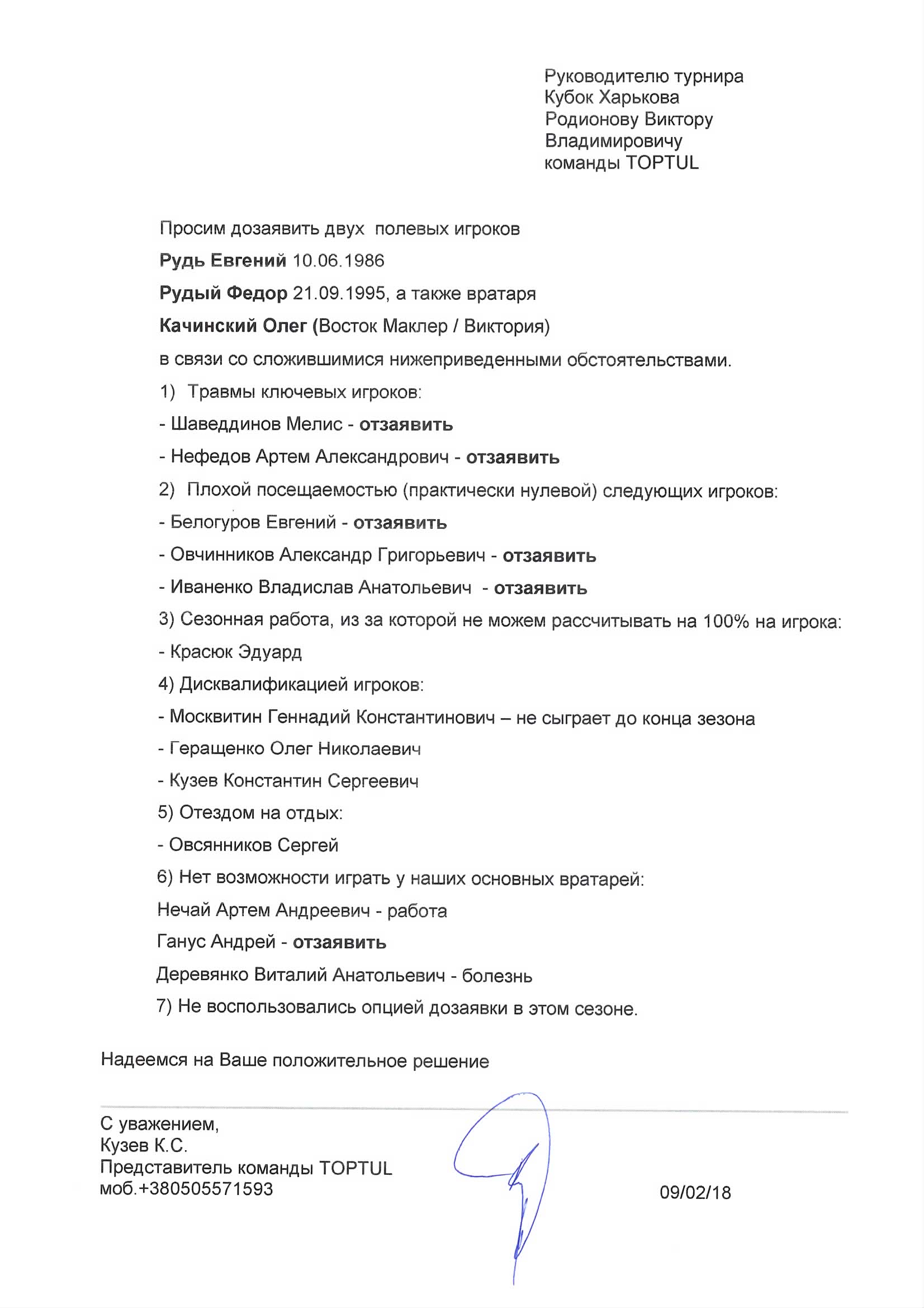 Просьба команды Toptul о дозаявке