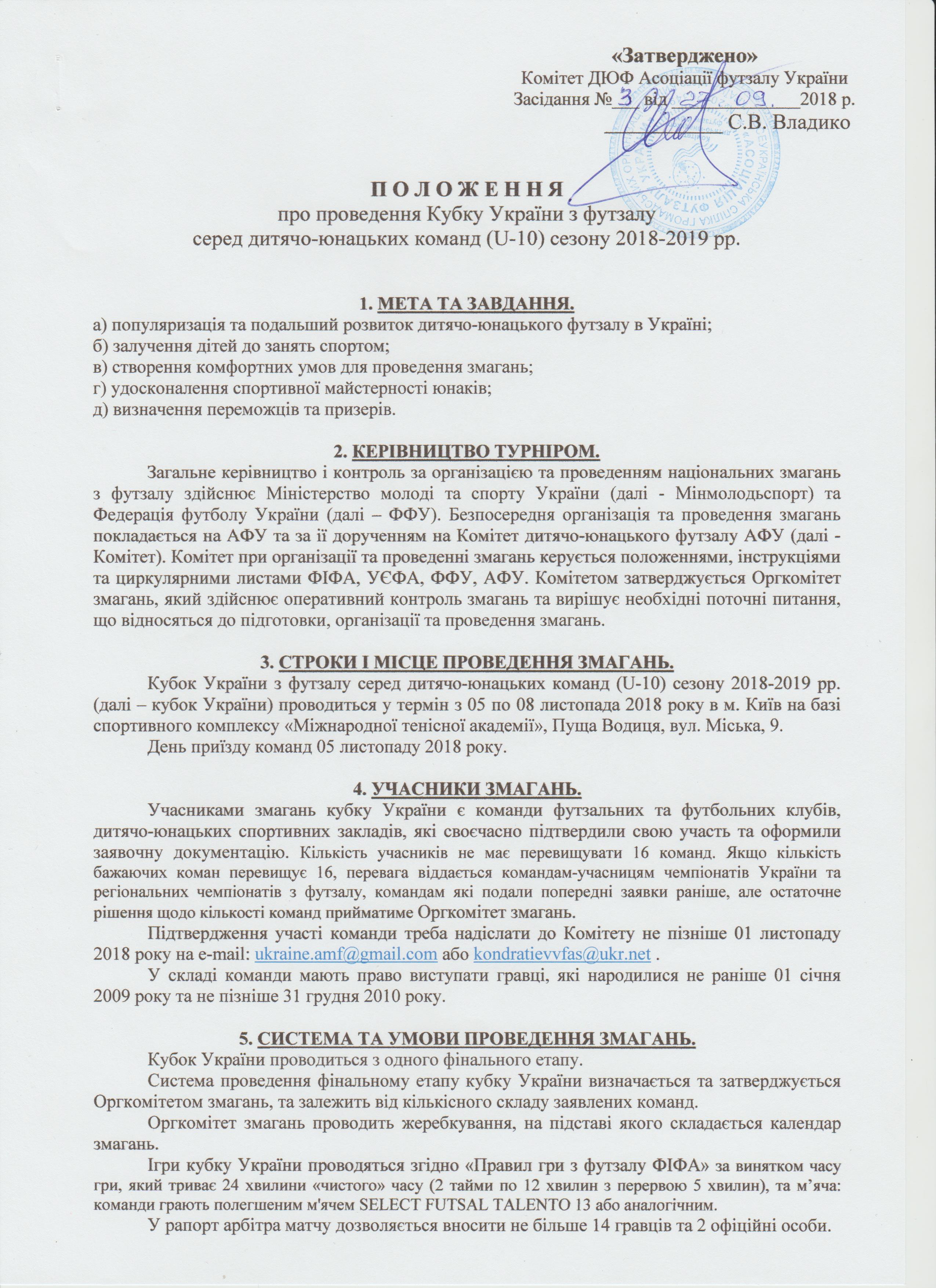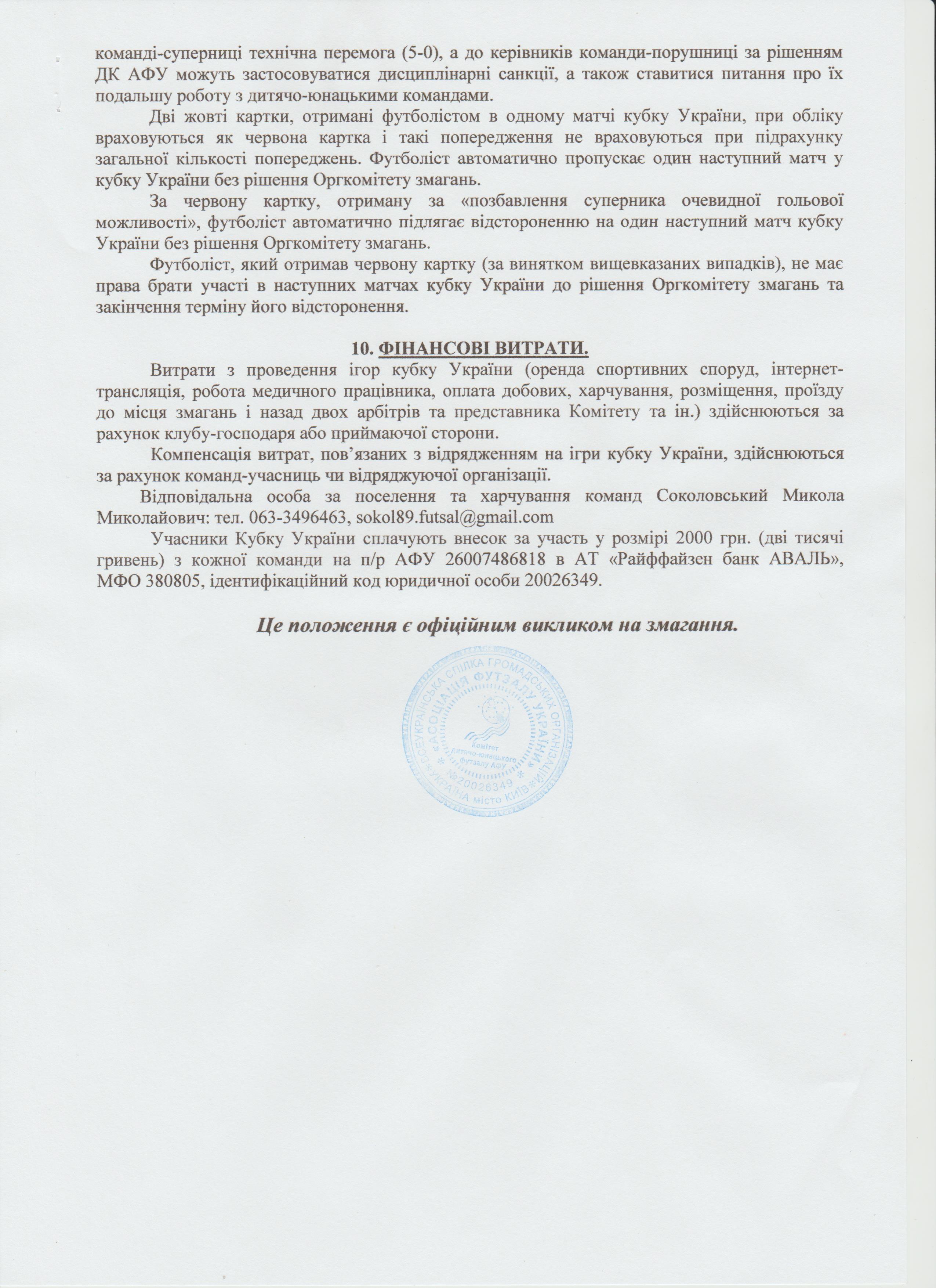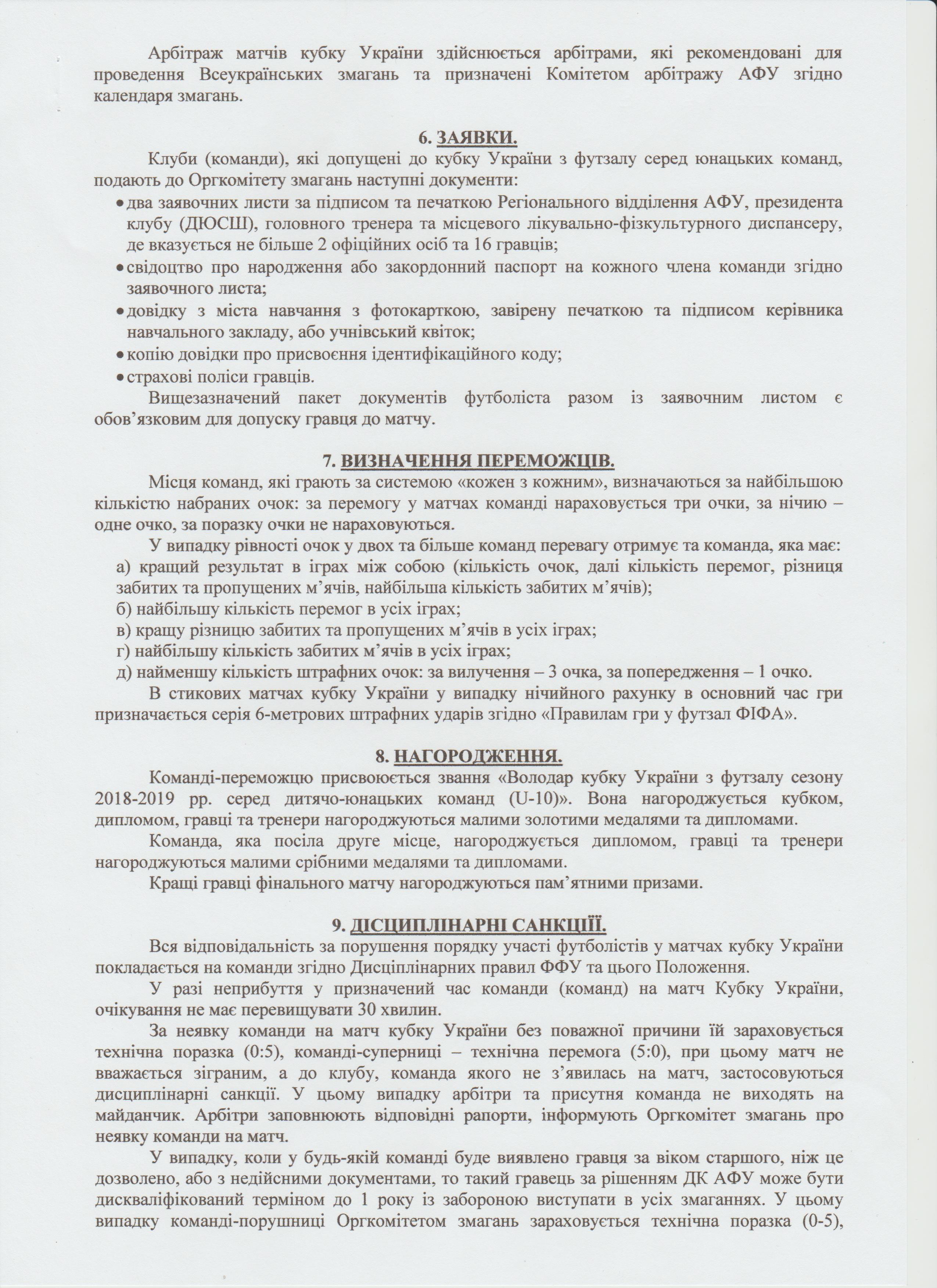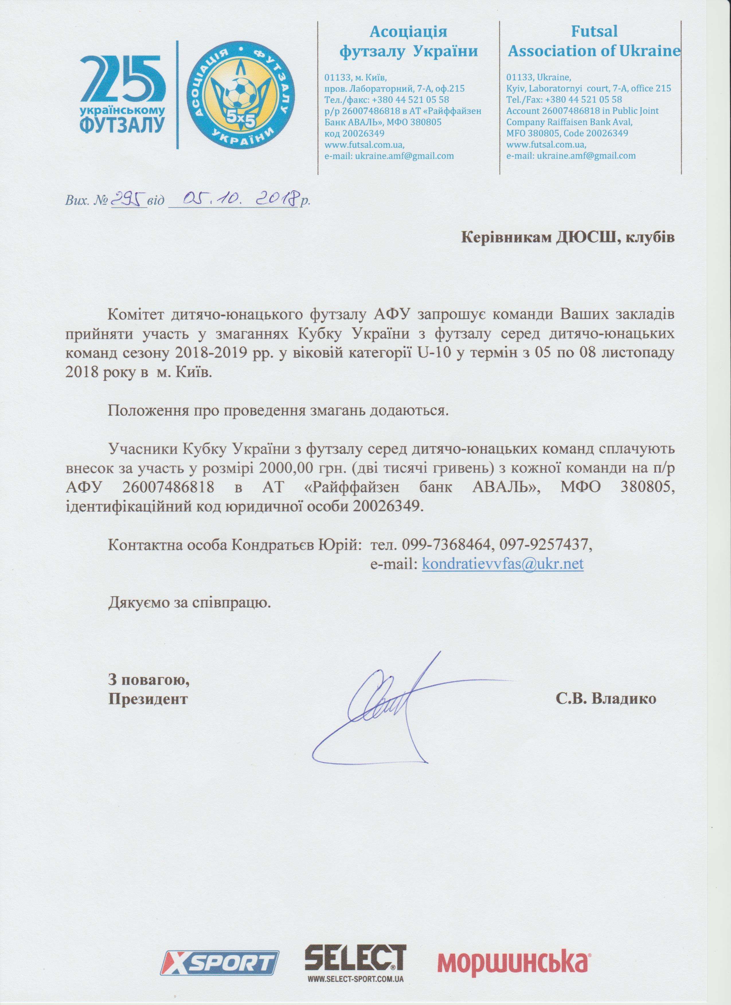 Лист від комітету ДЮФ АФУ про Кубок України U-10