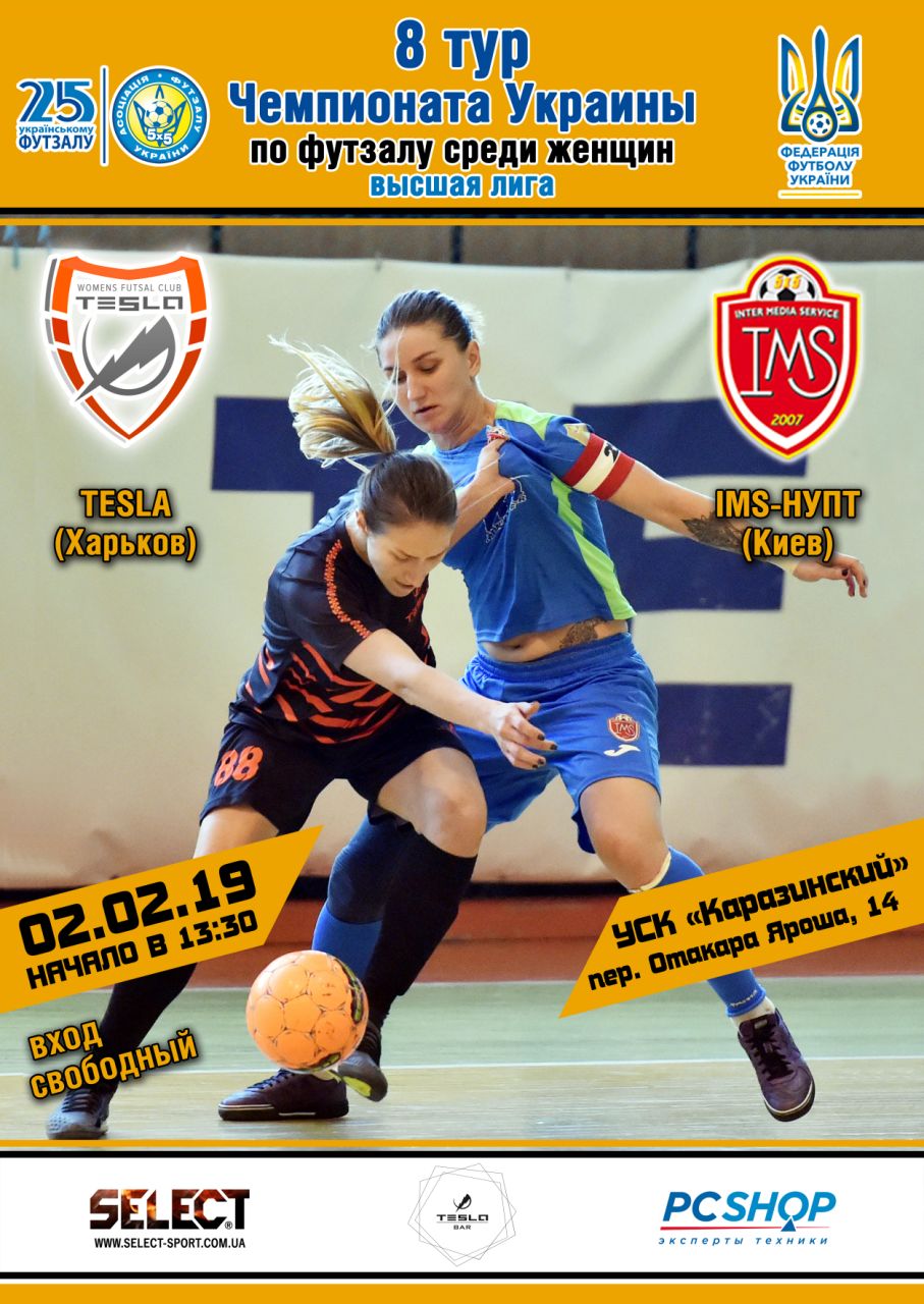 TESLA встретится с Киевским IMS-НУПТ, это важнейший матч для обеих команд. На данном этапе IMS-НУПТ находится на 1 строчке турнирной таблицы с результатом 18 очков, а TESLA находится на 2 строчке турнирной таблицы с результатом 15 очков. В 1 туре TESLA уступила с минимальным преимуществом (0:1) и настроена взять реванш!. Не пропустите этот матч, это будет нтереснейшее противостояние лидеров женского Чемпионата Украины по футзалу!