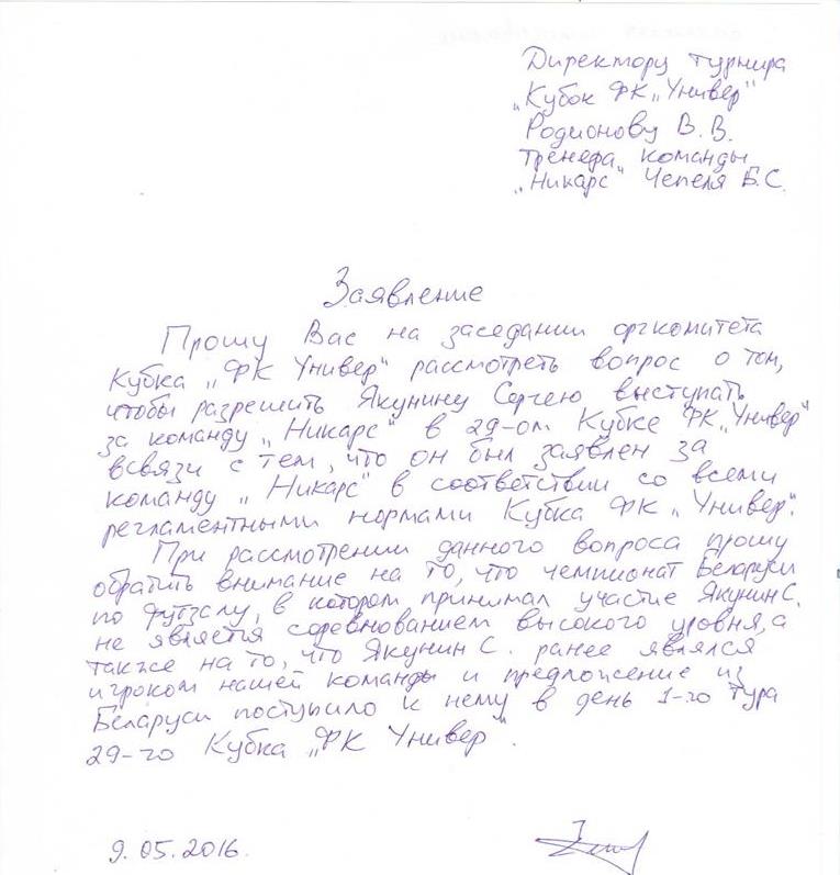 В Оргкомитет турнира поступило письмо от команды Nik&Ars с просьбой разрешить игроку Якунину Сергею продолжить выступление в 29 Кубке Универ за их команду.