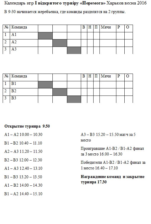 В субботу, 21 мая, в СК "Звезда", ул. Динамовская 3 А, пройдет І открытый турнир "Перемога",начало в 10-00.