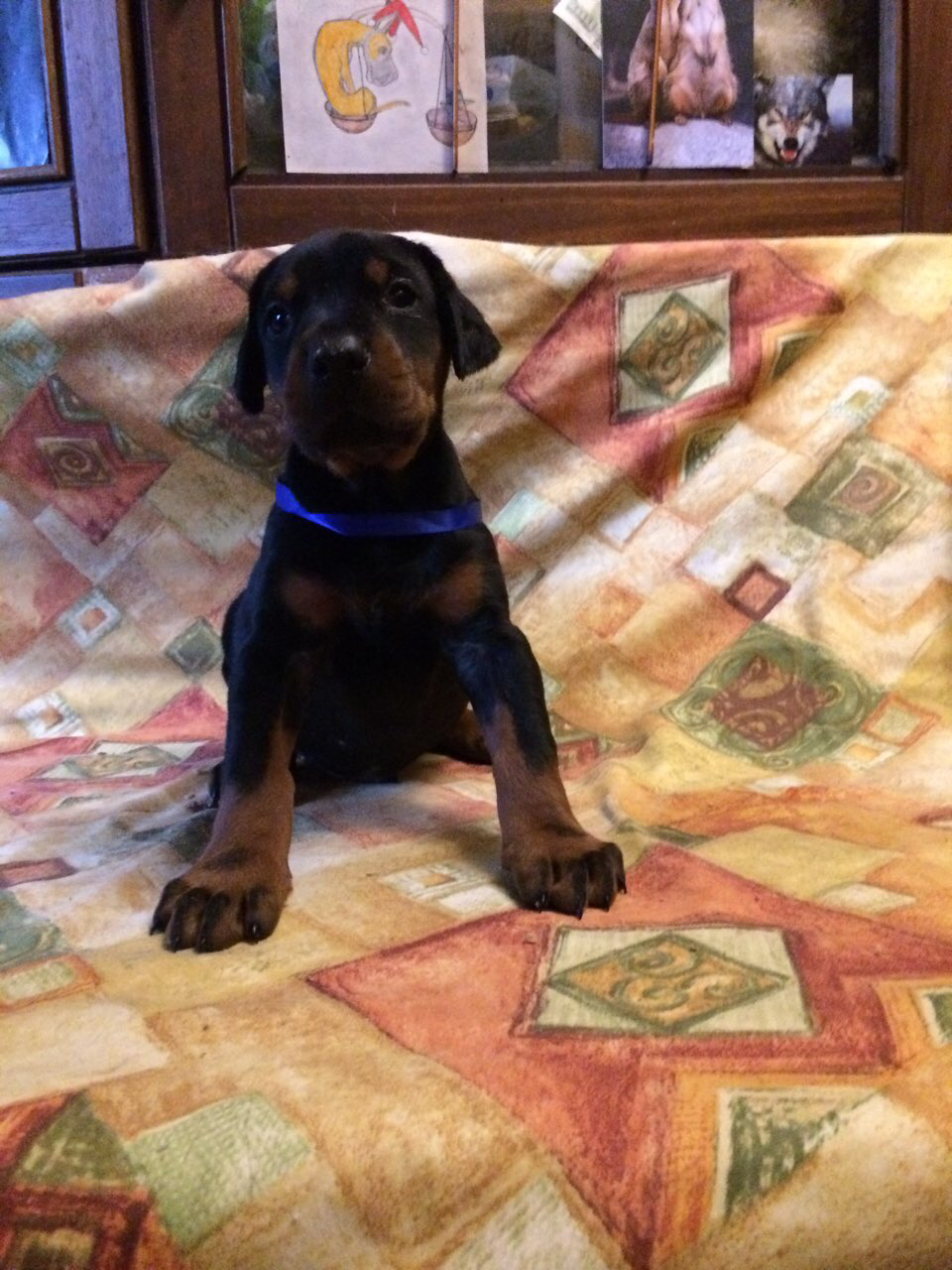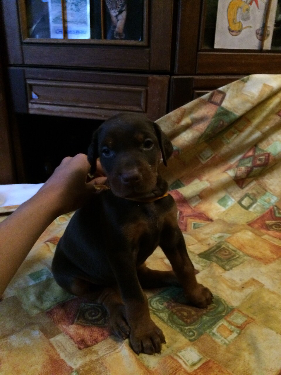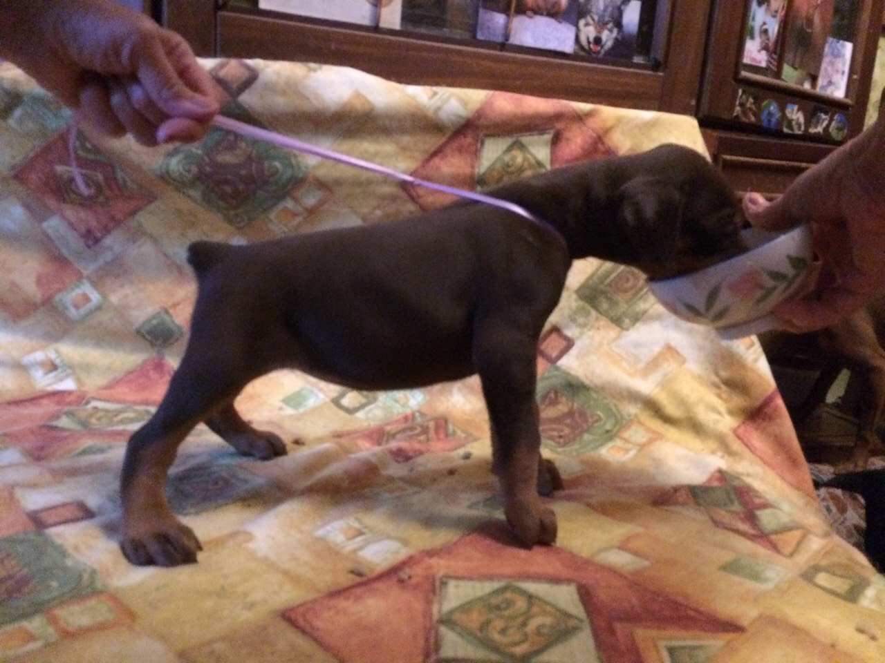 Доберманы 3 месяца :сука коричневый подпал и сука чёрный подпал . крупные , крепкие , активные .